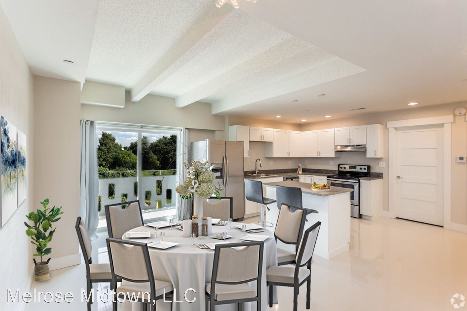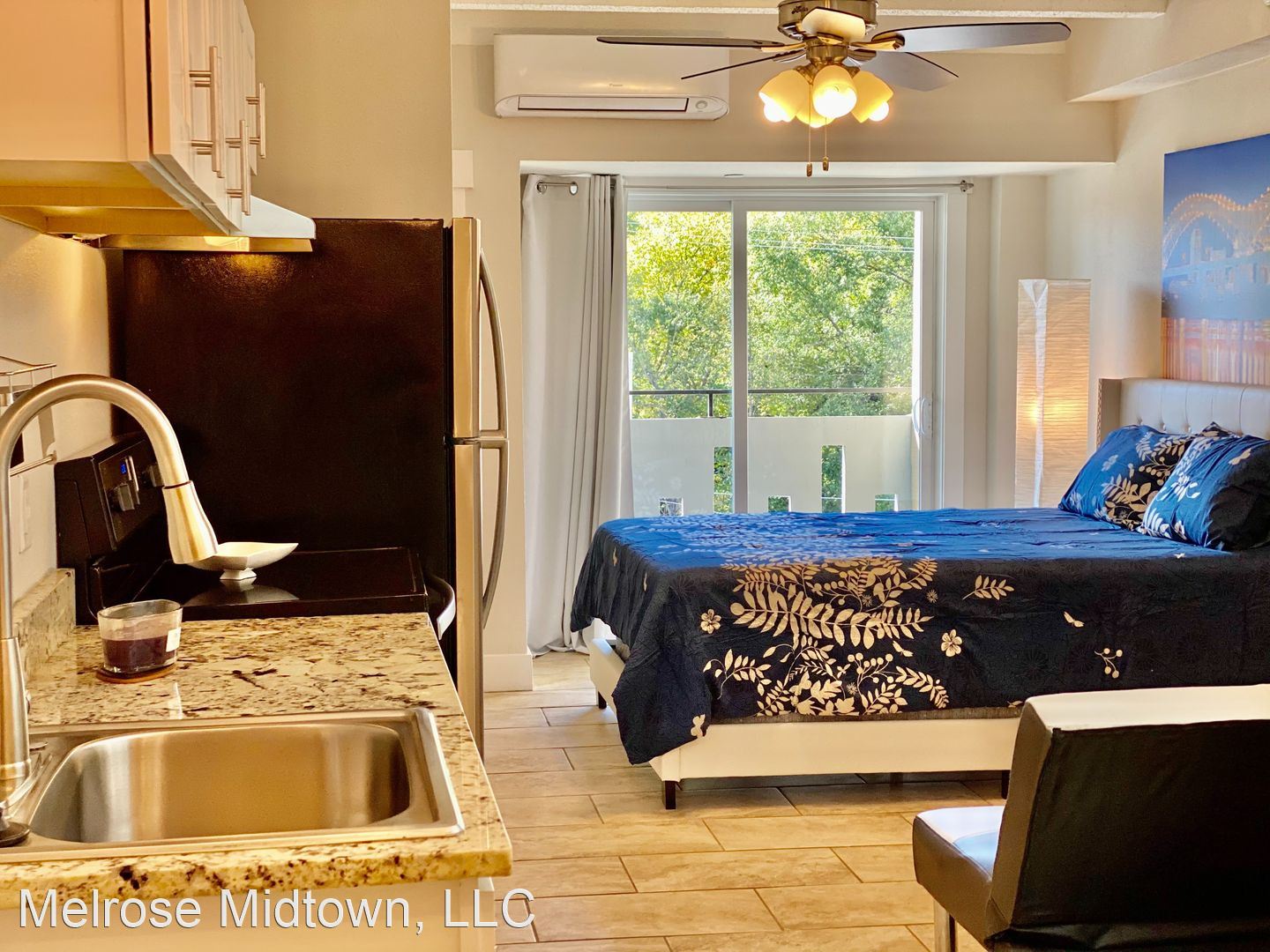 The Kay - The Kay is one of our most beautiful apartments. The Kay's open-plan great room features a granite island for entertaining or casual dining, stainless appliances, pendent lighting, walk-in closet, and marble bathroom. The second bedroom is great for roommates, a home office, a guest room, or gaming command center. You'll find endless cabinets and a full-height pantry in the chef's kitchen, along with all-new granite countertops. A full bath opens off the great room. As a corner unit, the Kay offers two balconies. There is so much light and air that you might not even need your built-in ceiling fans. But you'll have them, just in case. The Melrose was named Best Apartment Community in Memphis by the readers of the Commercial Appeal newspaper three years in a row. Are you ready to move? We're ready to meet you! Prices may be higher on higher floors (including the penthouse).